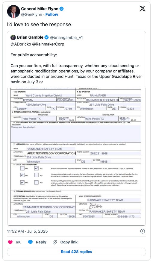 I have no idea where any of this goes, and if we should control the weather even if we have the technologies to do so. What I do know is that it is going to be weird, and we’ll need to get comfortable with organizations being run by, as one eloquent YouTube commentator puts it: “a dude [who] has a mullet, a satellite truck & Jesus on his shirt”.